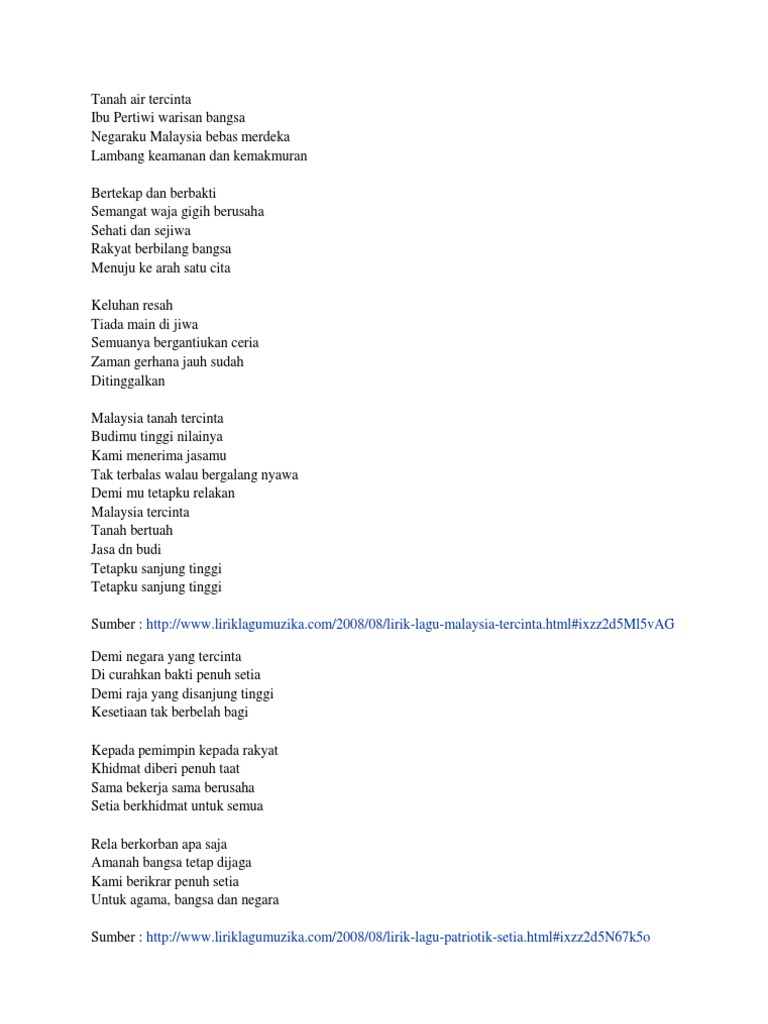 Lirik Lagu Patriotik from imgv2-2-f.scribdassets.com Lagu patriotik malaysia yang terakhir ingin kami kongsikan ialah gemuruh jiwa nyanyian faizal tahir. Lirik lagu gagah setia (lagu tentera darat malaysia) gagah dan setia. Di curahkan bakti penuh setia. Lagu ini dinyanyikan oleh alif satar (choir & penyanyi latar: Di curahkan bakti penuh setia. By january 22, 2021 uncategorized 0 comments. Tidak kira tua atau muda, lirik lagu ini sudah sebati dan setiap rakyat malaysia. Dinyanyikan sepenuh perasaan oleh allahyarham sudirman haji arshad pada 1982.